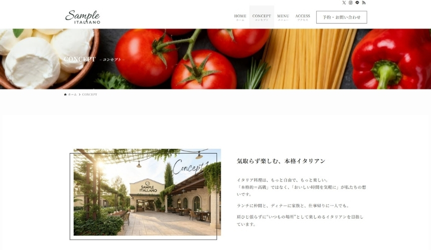 デモ画像はすべて編集OK。写真を差し替えるだけで整います。