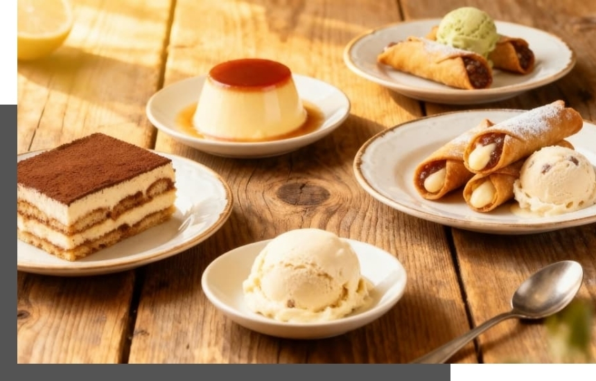 手作りティラミスや濃厚プリンなど、カフェタイムにもぴったりなスイーツをお楽しみください。