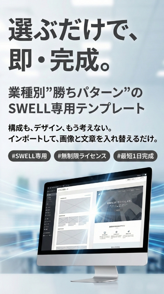 KATADORIは、WordPressテーマ「SWELL」専用に設計された業種別テンプレート集です。